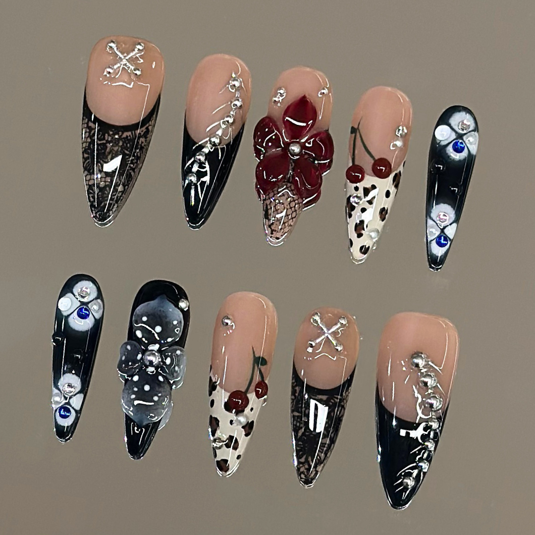 - 10 custom-designed press-on nails (varied sizes)